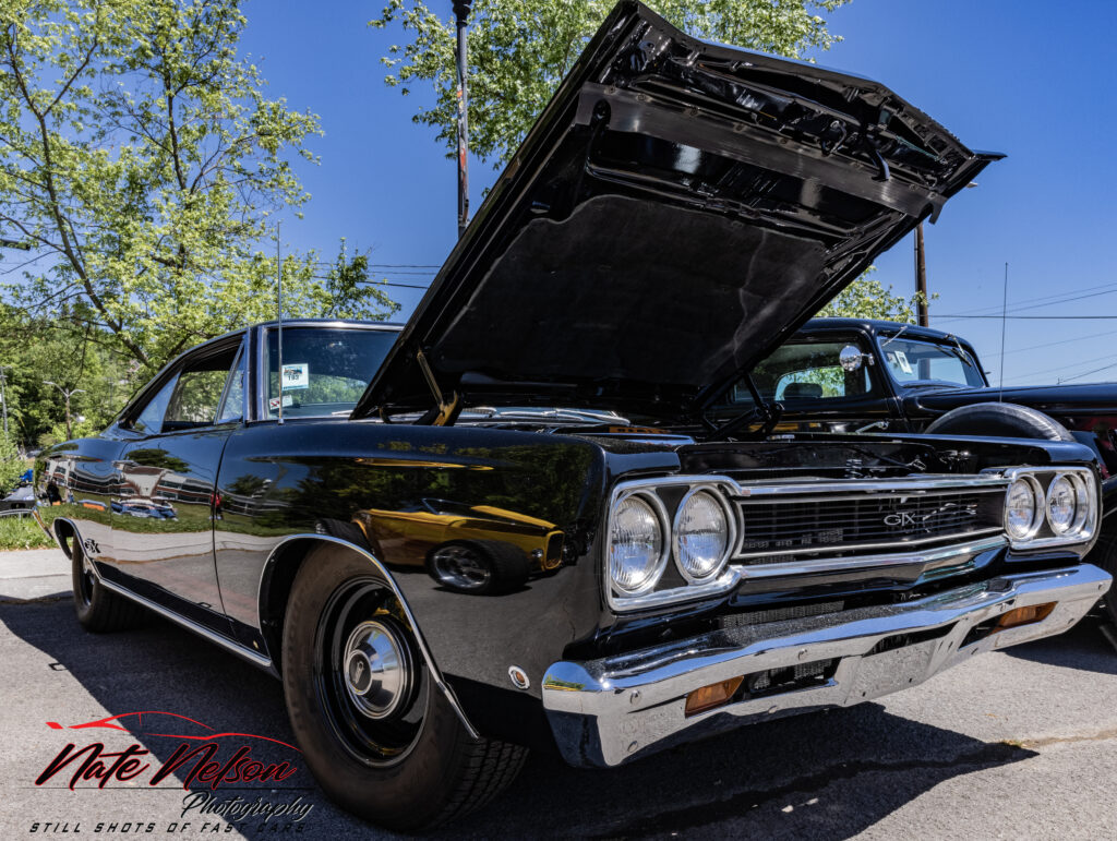 Scottie and I walked many miles making sure we didn’t pass any car by. We found some amazing builds, really detailed graphics, and a lot of serious horsepower. Some of the highlights for me were a ’55 Cameo, a ’32 Ford, a VW bus with groovy graphics, a ’68 GMC Step Side, a ’48 Bentley, and a ’53 Nash Pink Panther theme with metallic flake paint and ghost graphics. A neat thing about outdoor shows is that things are always changing and there are new surprises around every corner as cars come and go. Every time we made a loop around there were new cars to see. I had a good time talking to owners and builders to see what their motivation was behind each build. One thing I look for is unique, natural shots that are not staged, like the black mirror finish on the GTX having a great reflection of the street rod parked next to it.